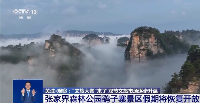 同时,位于武陵源区的张家界森林公园鹞子寨景区,在沉寂十年后也于国庆期间正式恢复对中外游客开放。截至目前,张家界国家森林公园10月1日至3日的网络预约人数已达2.9万人次,较去年同期增长约6.83%。